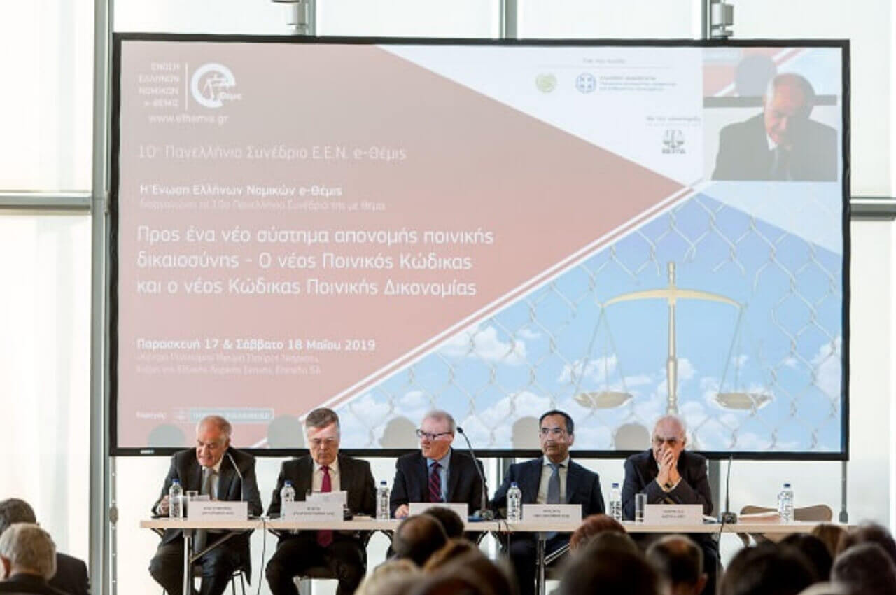 Την Παρασκευή και Σάββατο 17 και 18 Μαΐου 2019 πραγματοποιήθηκε με πολύ μεγάλη επιτυχία το 10ο Πανελλήνιο Συνέδριο της Ένωσης Ελλήνων Νομικών e-Θέμις στο Κέντρο Πολιτισμού Ίδρυμα Σταύρος Νιάρχος. Το συνέδριο είχε θέμα «Προς ένα νέο σύστημα απονομής Ποινικής Δικαιοσύνης: ο νέος Ποινικός Κώδικας & ο νέος Κώδικας Ποινικής Δικονομίας» και έλαβε χώρα υπό την αιγίδα του Υπουργείου Δικαιοσύνης, Διαφάνειας και Ανθρωπίνων Δικαιωμάτων, καθώς και του Δικηγορικού Συλλόγου Αθηνών, σε συνεργασία με την Ένωση Ελλήνων Ποινικολόγων (Ε.Ε.Π.) και με την υποστήριξη της Ελληνικής Εταιρείας Ποινικού Δικαίου (Ε.Ε.Π.Δ.).